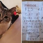They demanded that Chris keep his cat indoors and insisted they were tired of the constant “visits.”