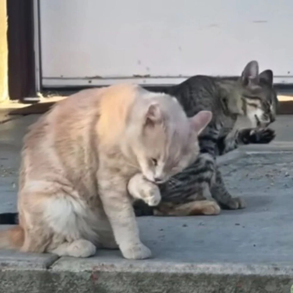 A few weeks later, Raspy arrived with a tiny kitten beside him.