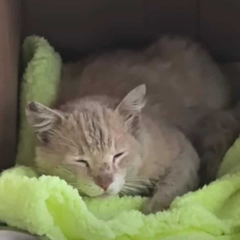 A few weeks later, Raspy arrived with a tiny kitten beside him.