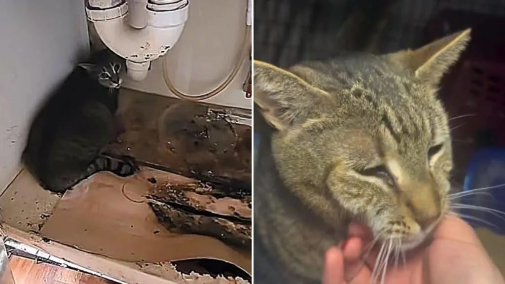 Under the sink, pressed tightly into the farthest corner, they found him shaking like a leaf in a storm.