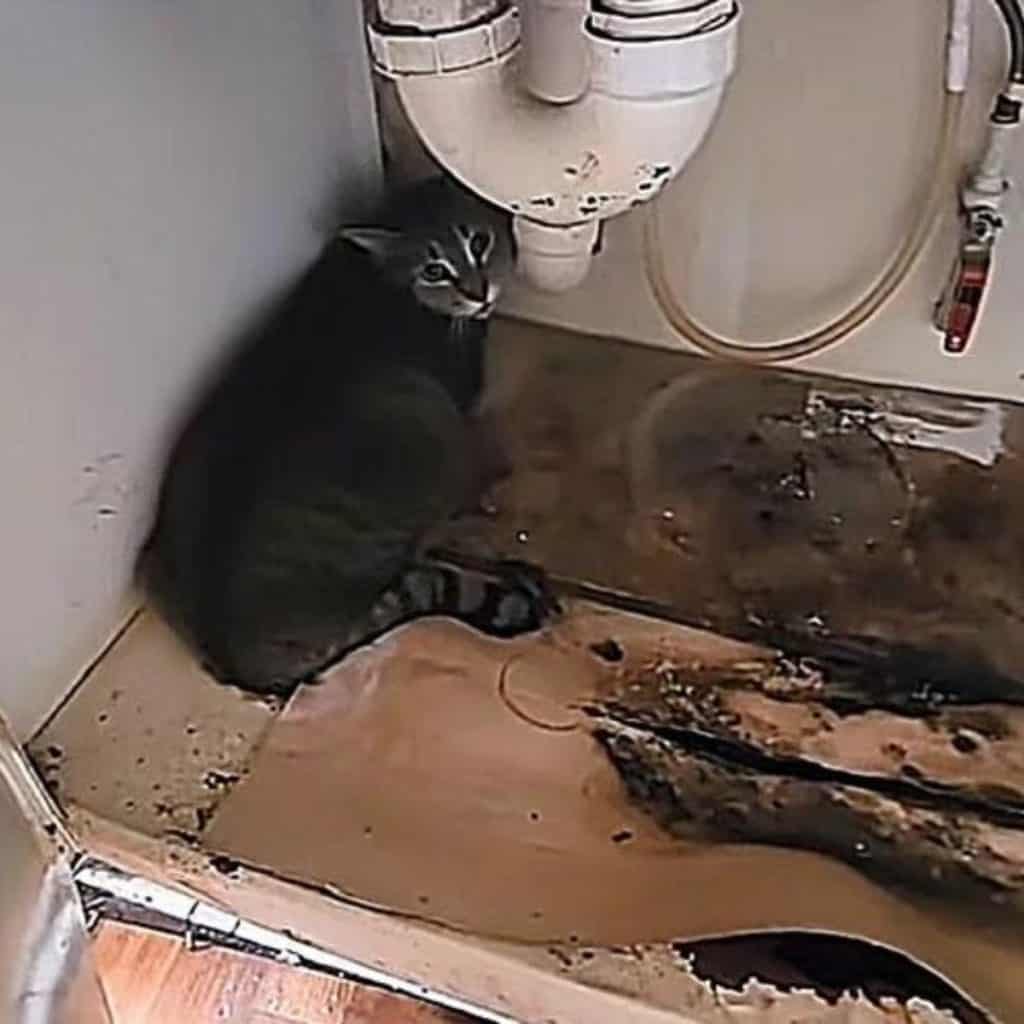 Under the sink, pressed tightly into the farthest corner, they found him shaking like a leaf in a storm.