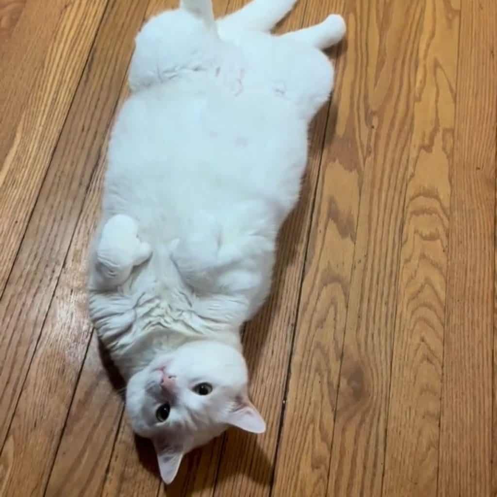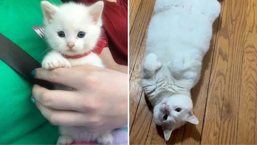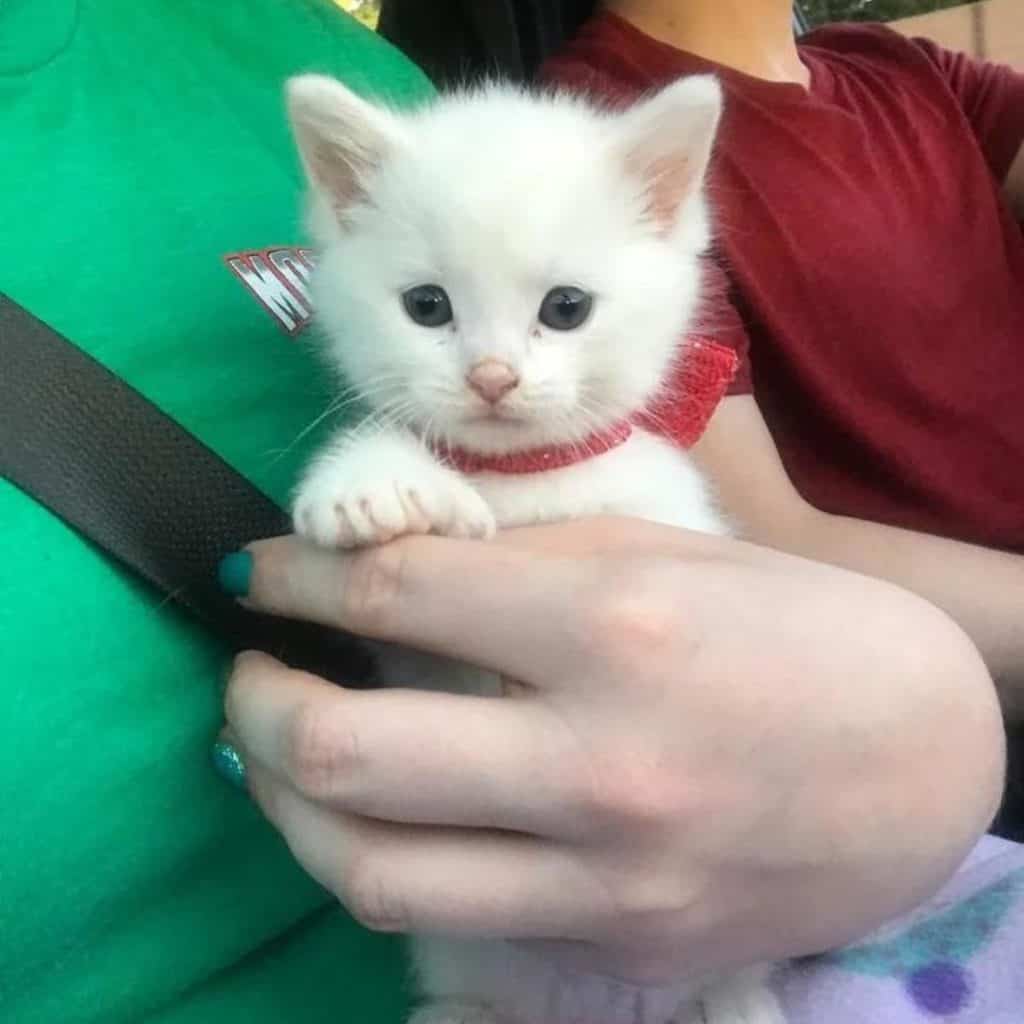 A man walked in holding a tiny snow-white kitten whose body was barely heavier than a feather.