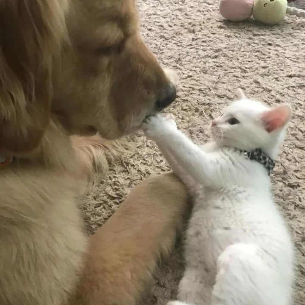 Bellini, one of his younger cat siblings, noticed Skywalker’s sadness and began curling beside him on the couch.