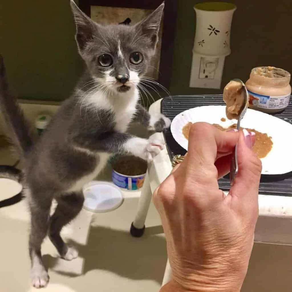She tried different foods, different textures, different methods, anything that might bring relief to the trembling kitten who wanted so badly to live.