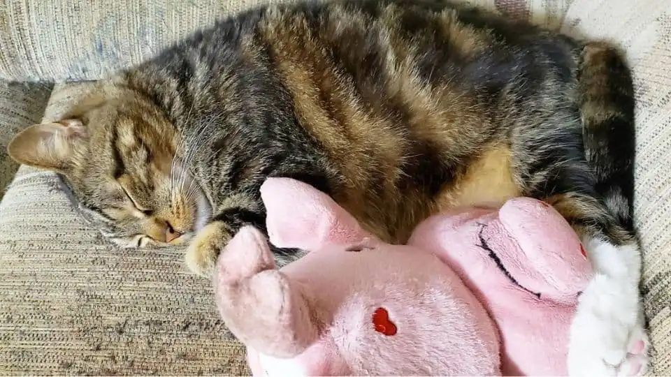 Diego would nuzzle, carry, and sleep with the pig, refusing to let it out of his sight. Suddenly, the quiet little cat who had always been a bit different seemed to have found his perfect companion.