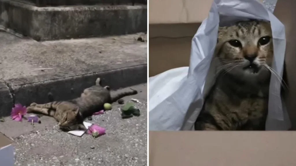 The cat was small and badly hurt.