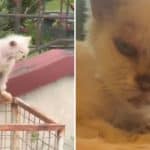 The cat flinched, expecting more pain.