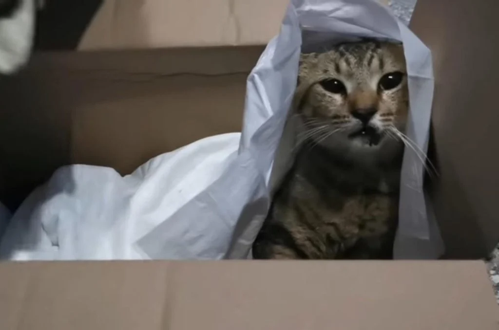 The cat felt her warmth through the cardboard.
