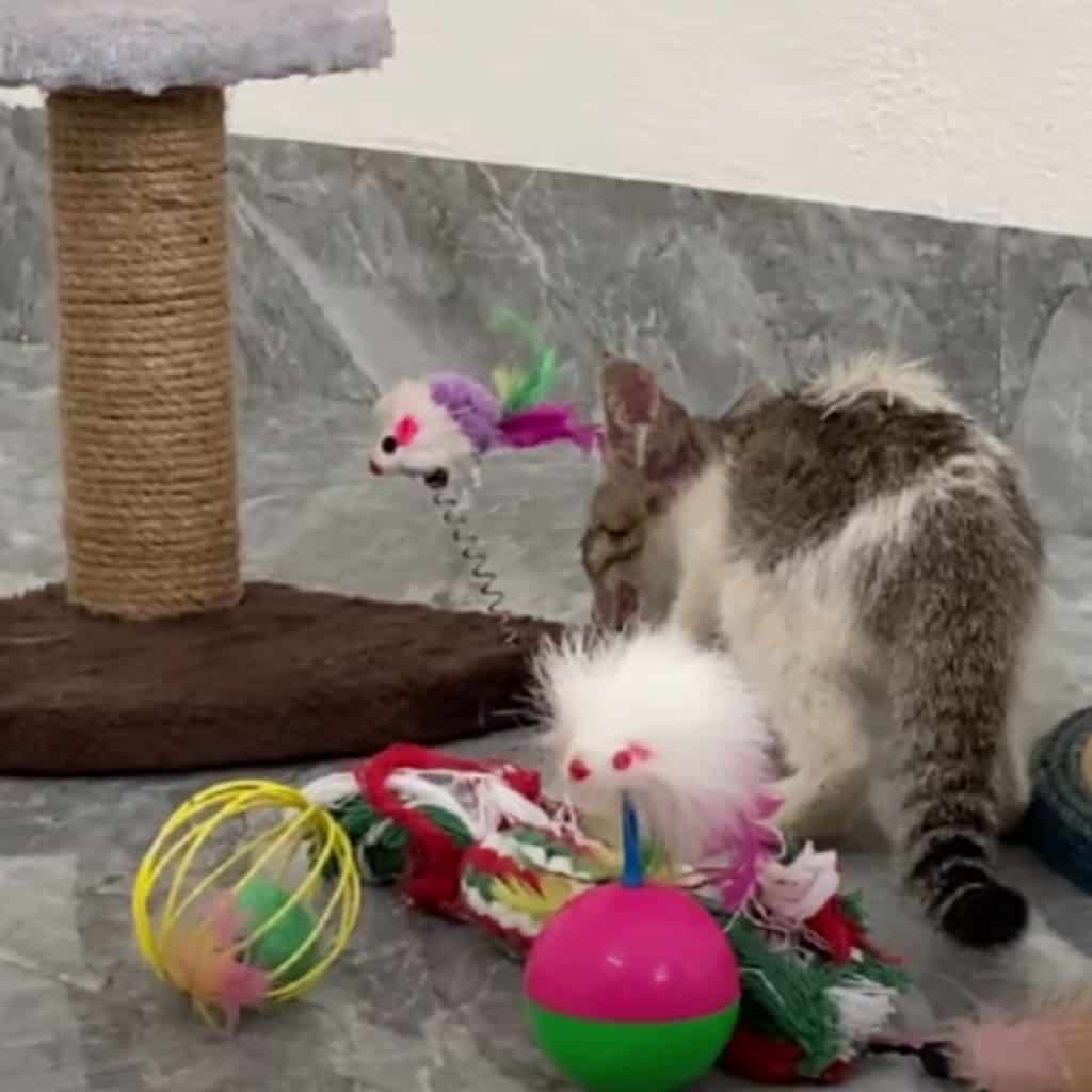 Toys became his new adventure. He rolled balls across the floor, jumped at dangling strings, and pounced with a burst of energy that no one would have believed possible just a short time earlier.