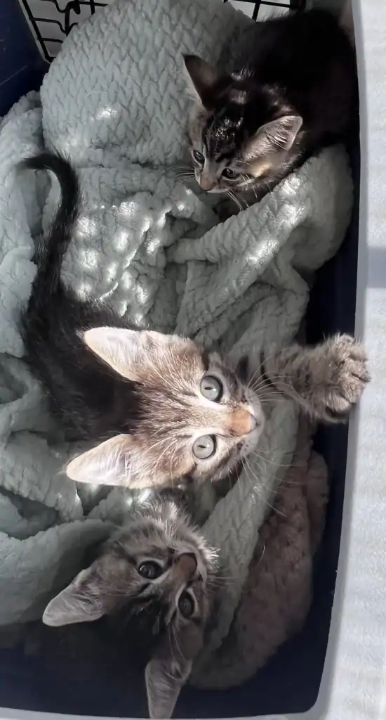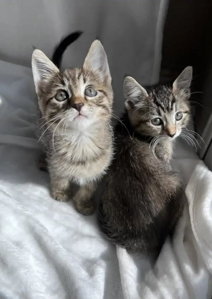 The kittens — barely seven weeks old — huddled together in the corner of their carrier, too scared to move.