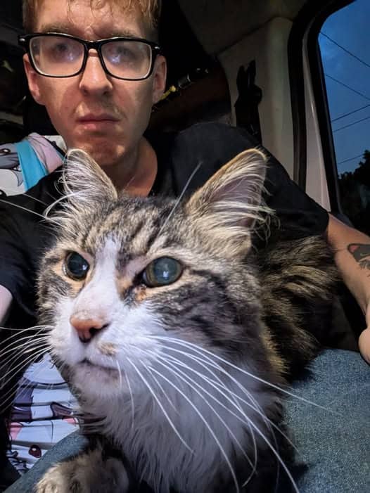 Frankie wasn’t a young kitten starting life’s journey. At the veterinarian’s office, John learned that Frankie was nearly fifteen years old.
