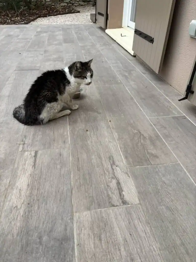 In a quiet neighborhood in Pertuis, France, a homeowner spotted a frail gray cat lying in the corner of their garden.