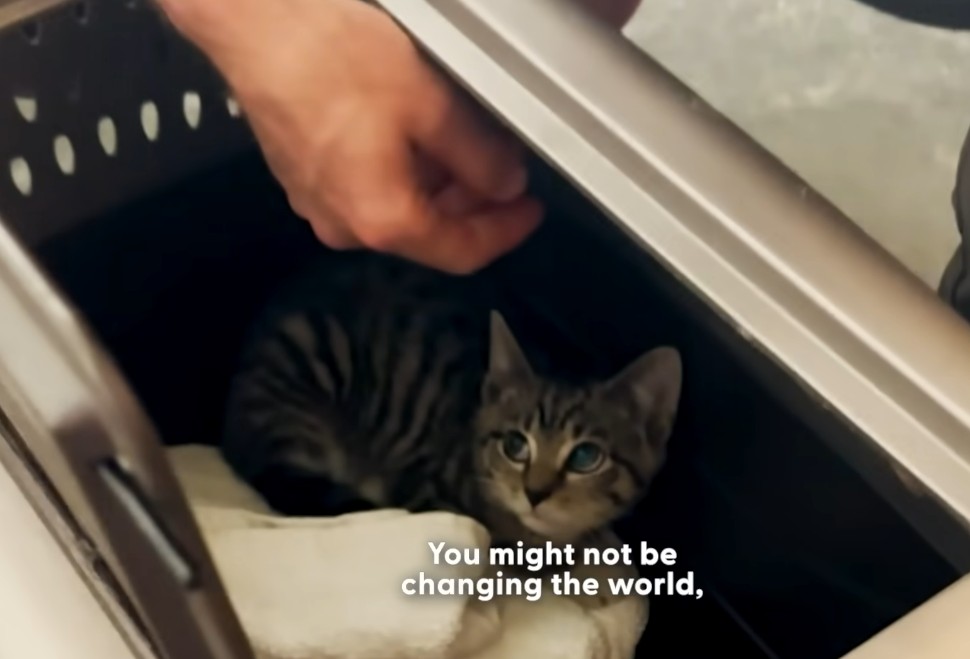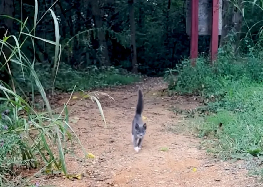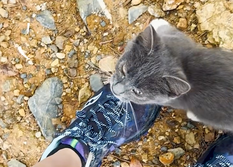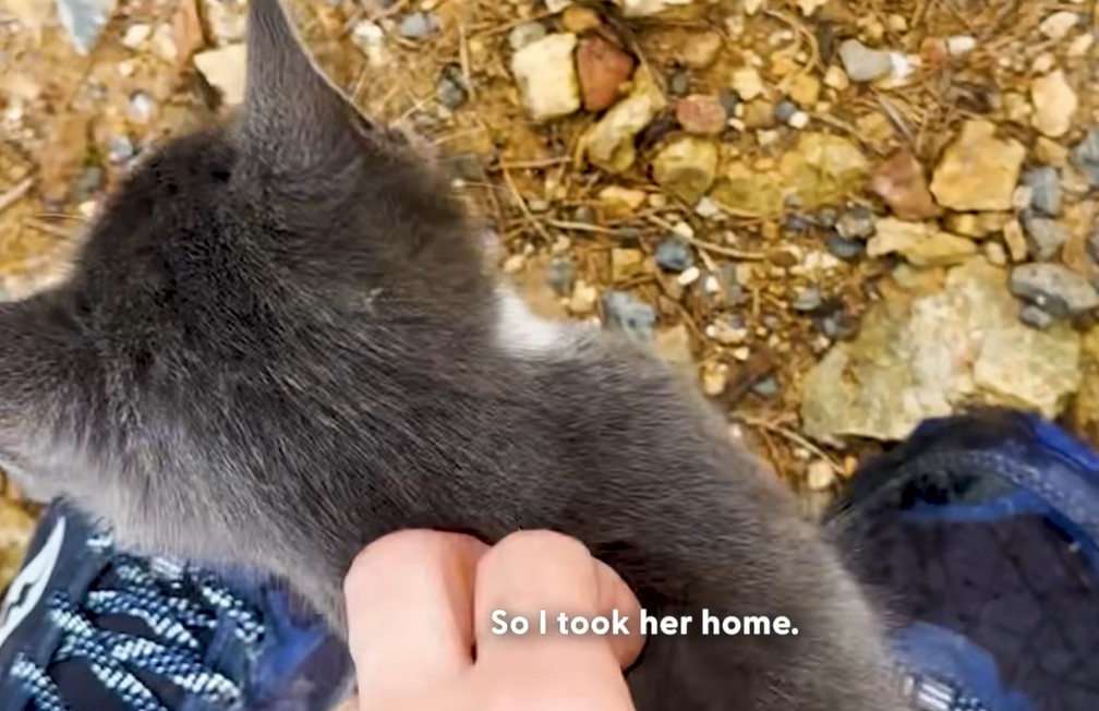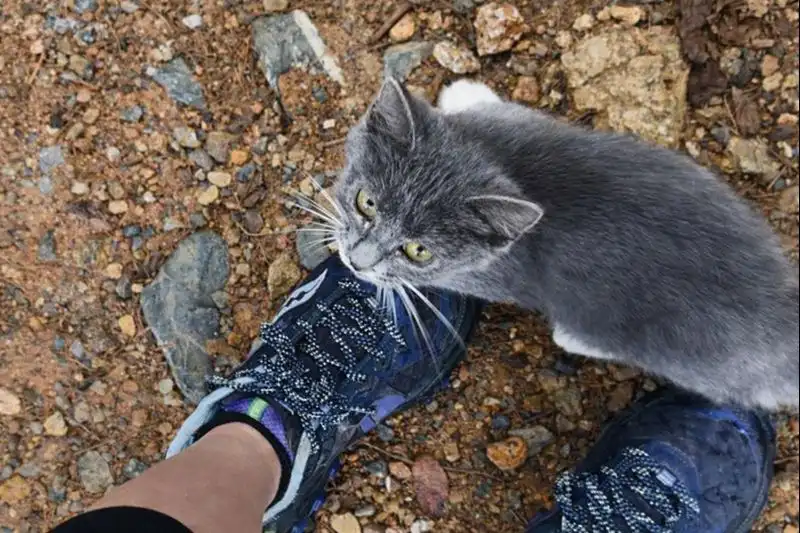 The kitten watched the hiker’s face again and again, like she was checking if the kindness would disappear.