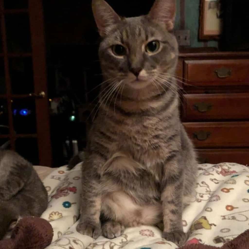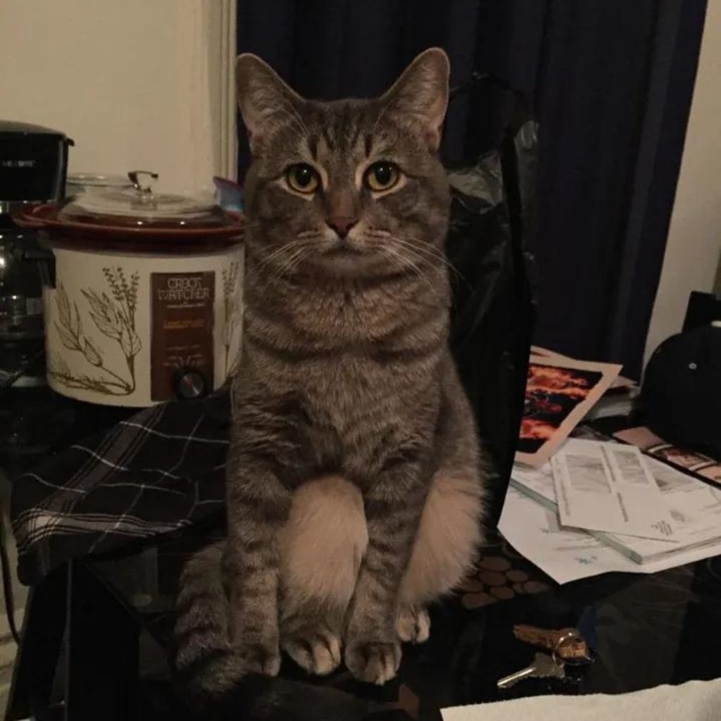 Most cats stretch, curl, or sprawl. Wilbur looked ready to discuss the weather. His photo felt warm and a little funny, the kind that makes you instinctively smile before you even know the story behind it.
