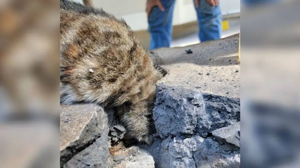 It took time, patience, and gentle teamwork, but inch by inch, the wall began to give way. Finally, with one last careful motion, the concrete loosened enough for Officer Mason to slip her hand around the cat’s head. She eased the frightened feline out, free at last.
