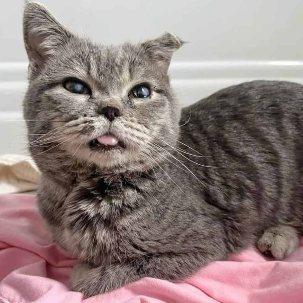 His fur grew softer, his strength returned, and his little quirks made him even more endearing — his tongue always stuck out because of his missing teeth, and his crooked ear gave him a look no one could forget.