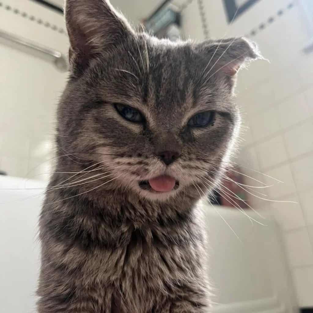 A local worker was going through their routine when they noticed a group of cats wandering nearby. Among them was one who looked especially fragile — an older gray cat with a bent ear and a few missing teeth.