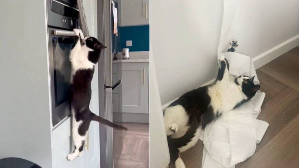 Coats, towels, oven mitts — all became part of his new daily routine of chaos.