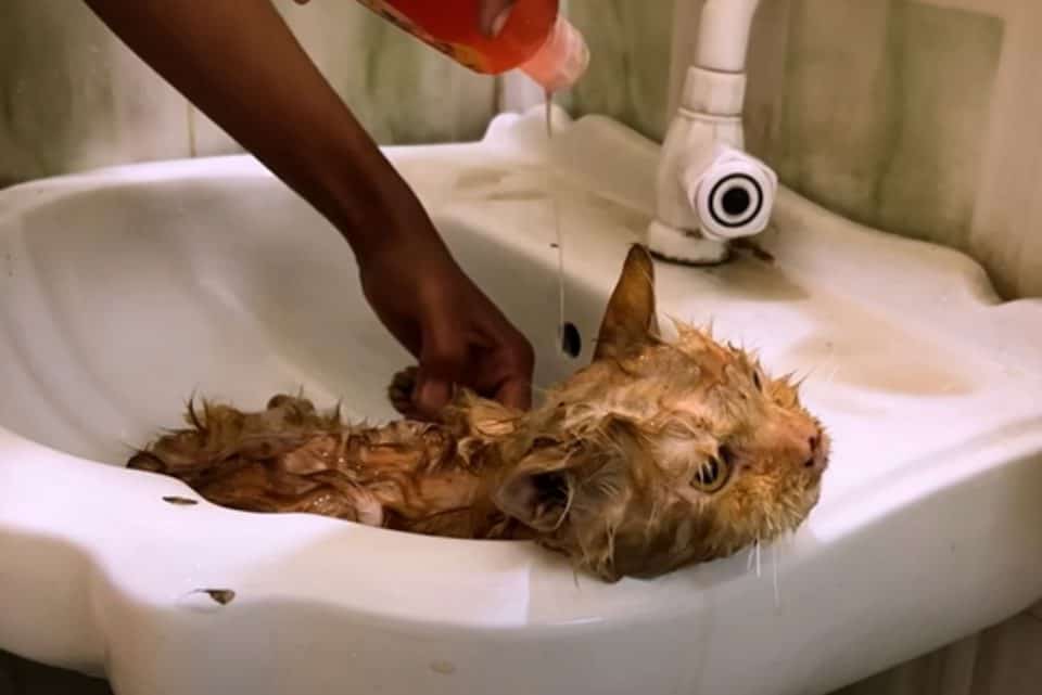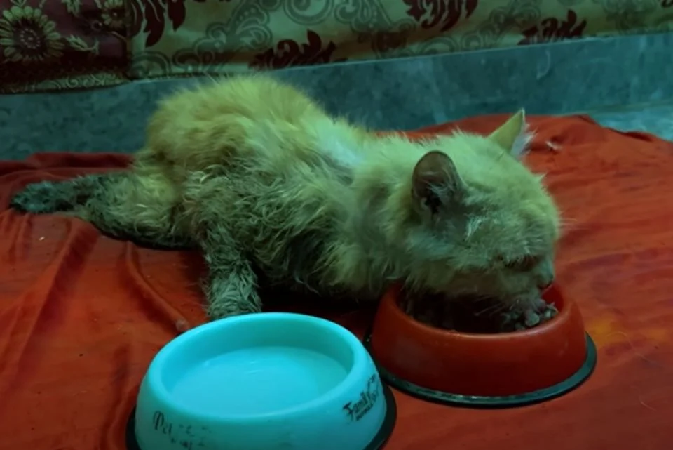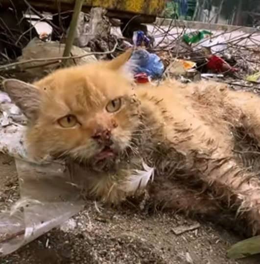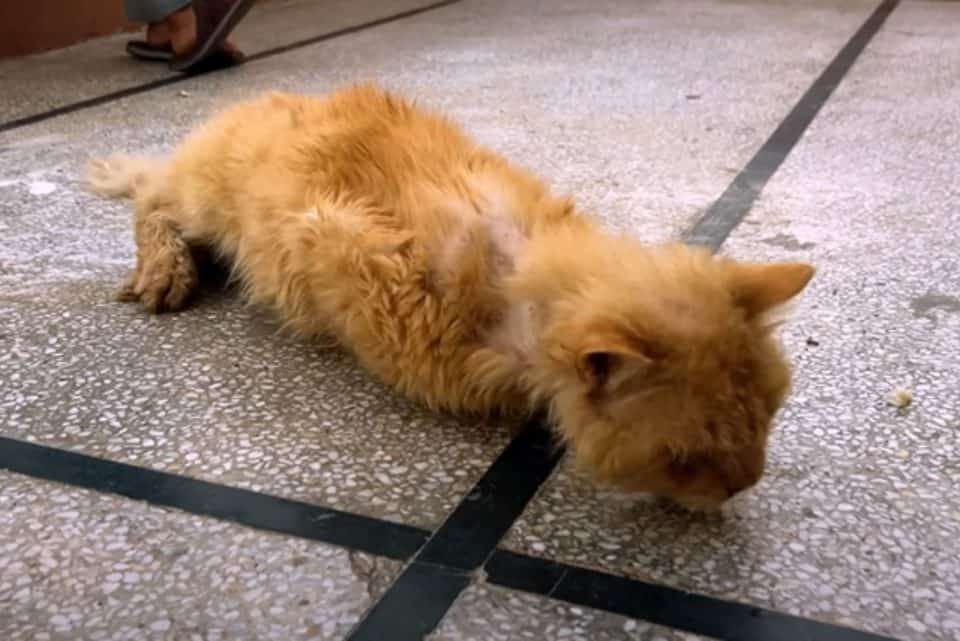 The cat’s eyes stayed half open, dull with exhaustion, watching the world ignore him.