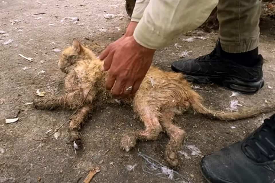 The cat lay stretched beside the Ohio road, his body still, his breathing so faint it seemed like it might stop at any moment.