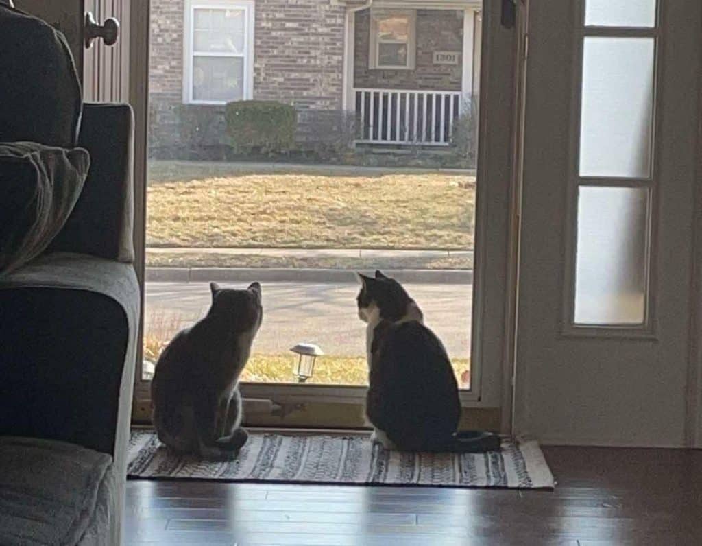 Each time a kitten left, Espresso watched with wide eyes.