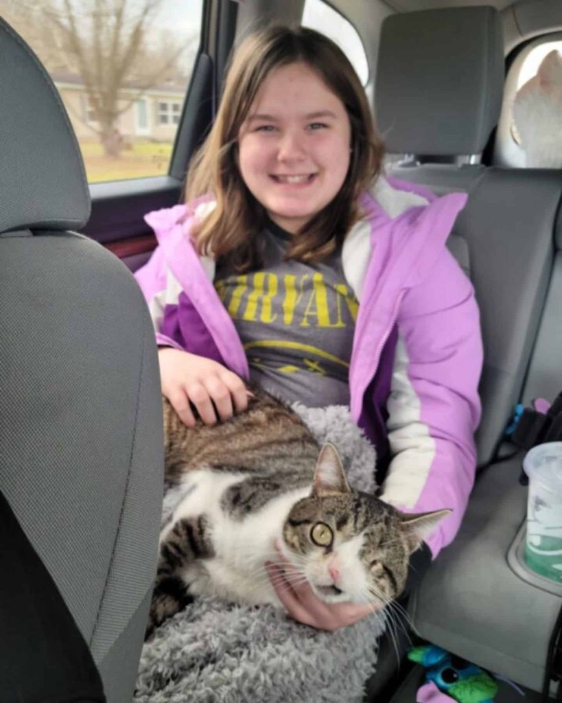 The moment he arrived at his new home, he settled in as if he’d always been there. He explored every corner, rubbed against every family member, and quickly discovered his favorite spot — right beside Holly’s daughter, who cradled him lovingly in her lap.
