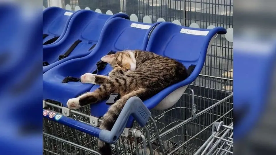 Children giggle when they spot him lounging near the shopping trolleys, while adults smile at the unexpected sight of a cat acting as the unofficial greeter.