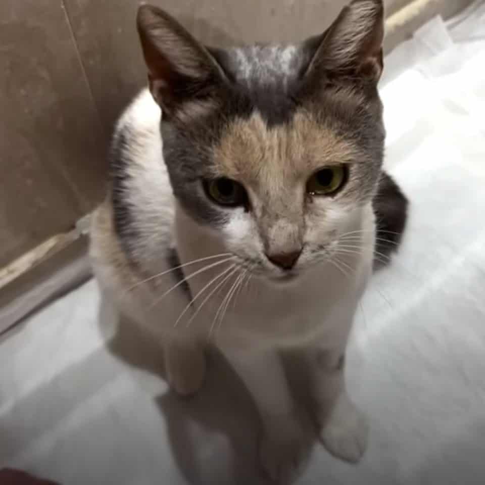 The cat’s body was still, but her eyes were alive, wide with fear and quiet pleading.