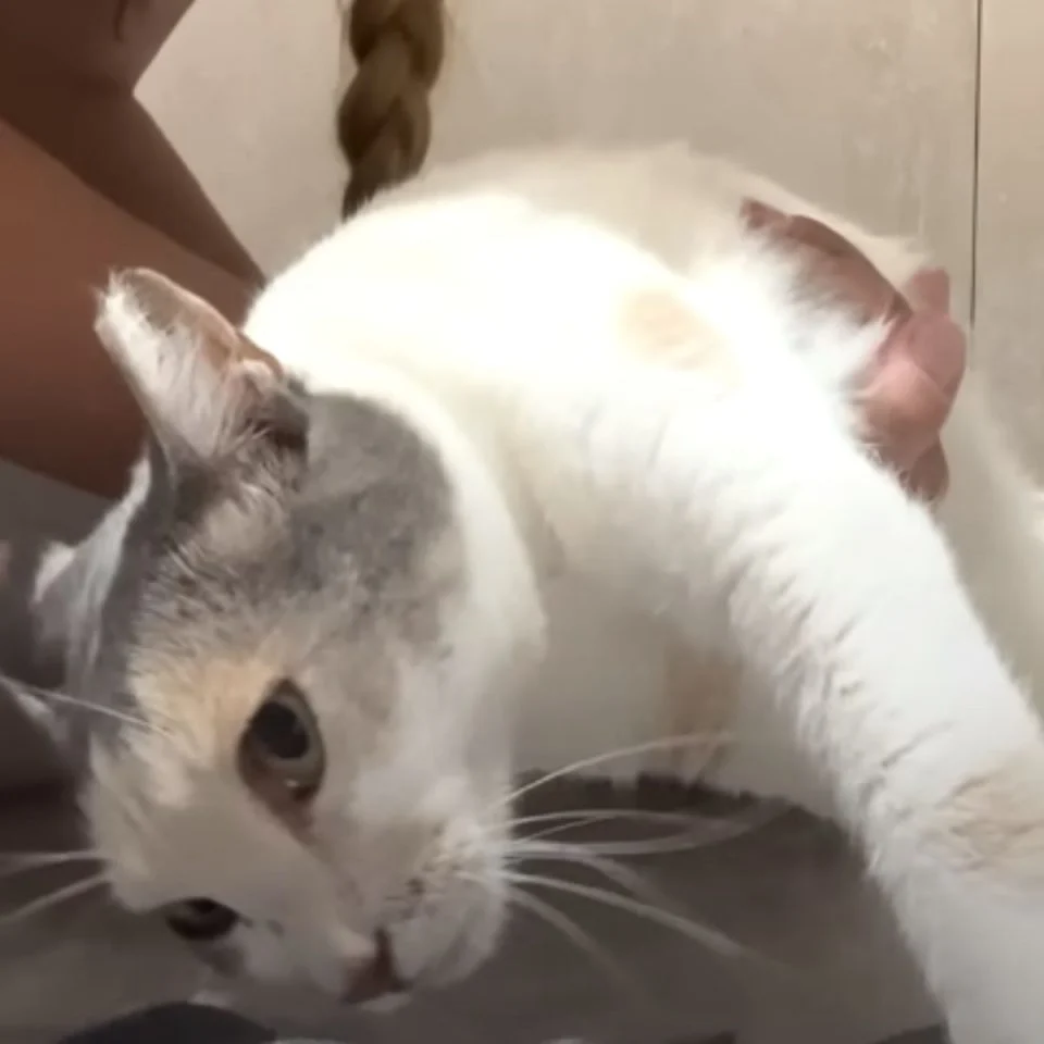 The cat felt warm hands for the first time in what felt like forever, and she did not fight.