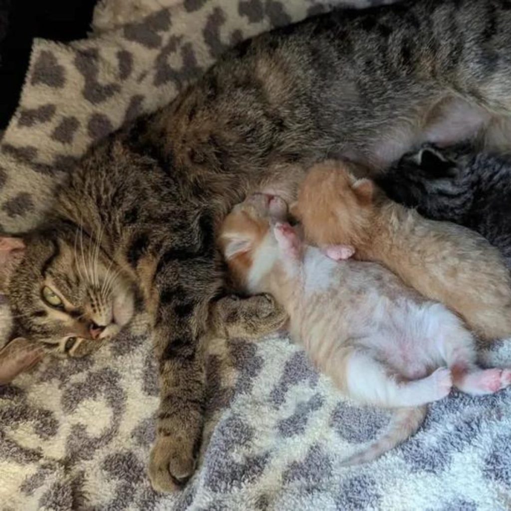 The brown tabby stood alone on the hot pavement, her belly heavy, her heart suddenly empty.