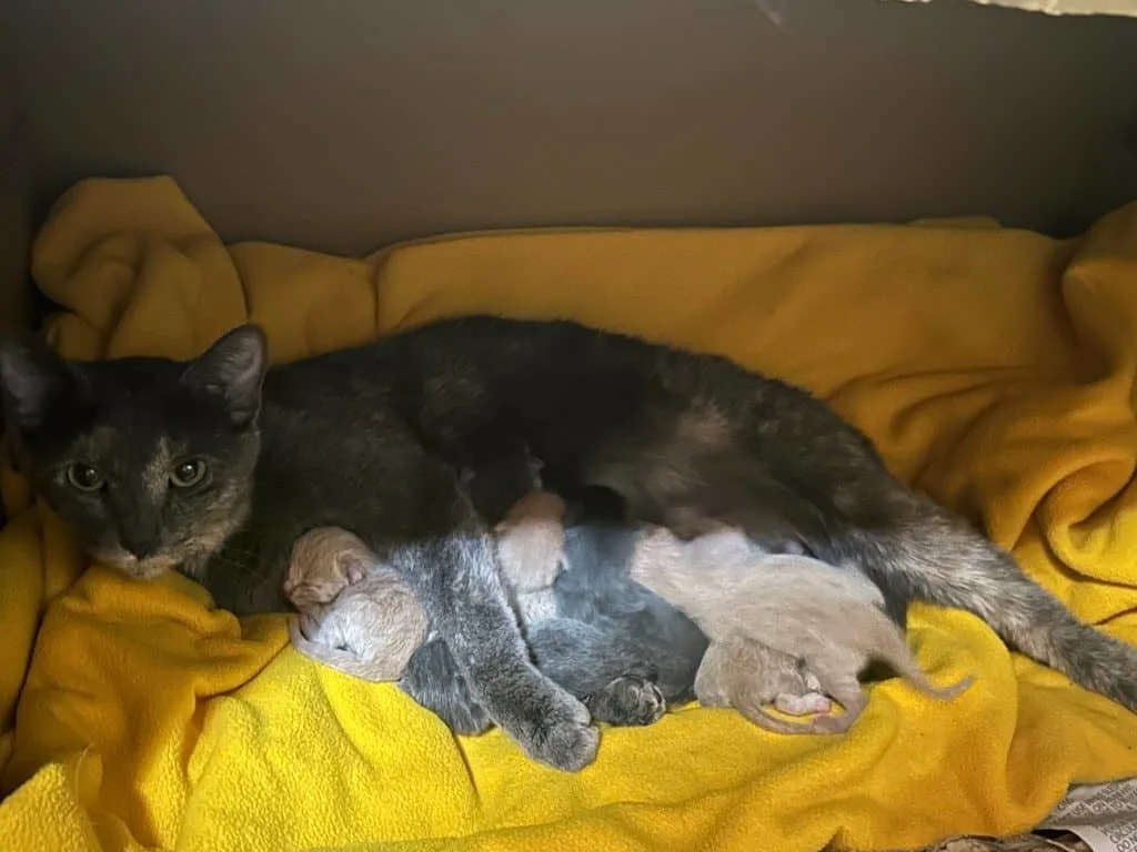 Ajita now waits in comfort, curled up on blankets, preparing to deliver her kittens. Her foster home offers safety, warmth, and the reassurance that she will never again face the cold pavement of abandonment. Soon, her babies will be born into an environment filled with care.