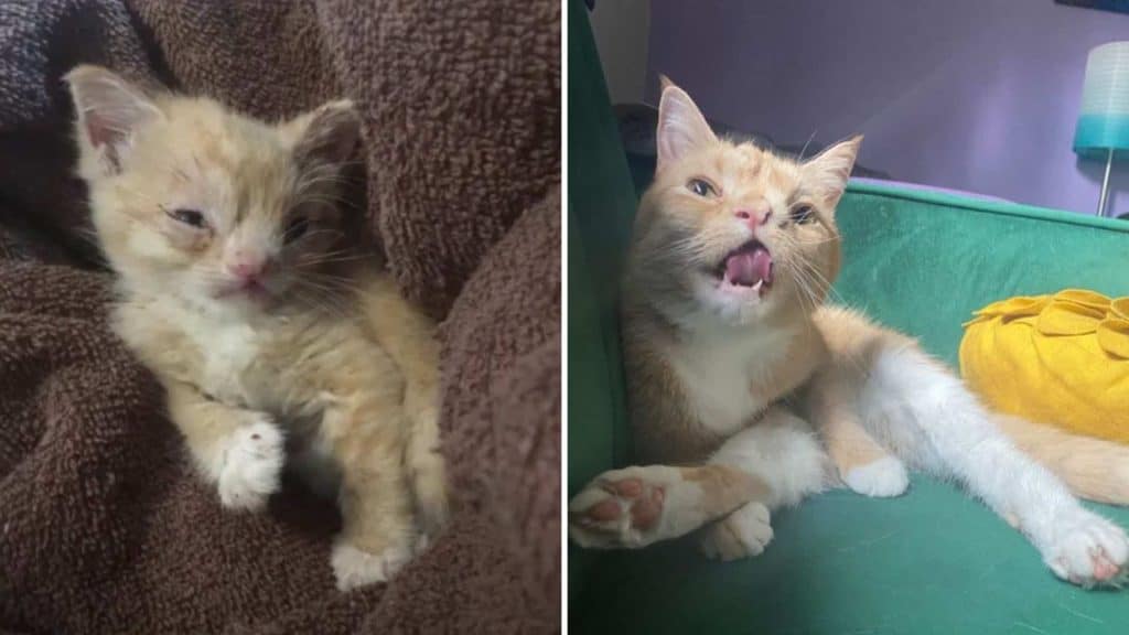 Lindsey became her full-time caretaker, cleaning her, medicating her, and feeding her around the clock. Despite constant infections and a stubborn case of ringworm, the kitten refused to give up.