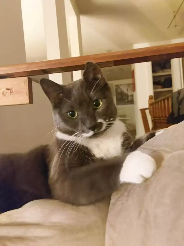 Instead, he returned to that banister day after day, sinking his claws into the wood with quiet focus. He wasn’t destructive in the usual sense.