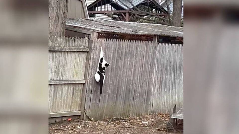 She hung helplessly from a wooden fence, her tiny paw wedged between two rough planks. Every attempt to free herself only deepened the pain.