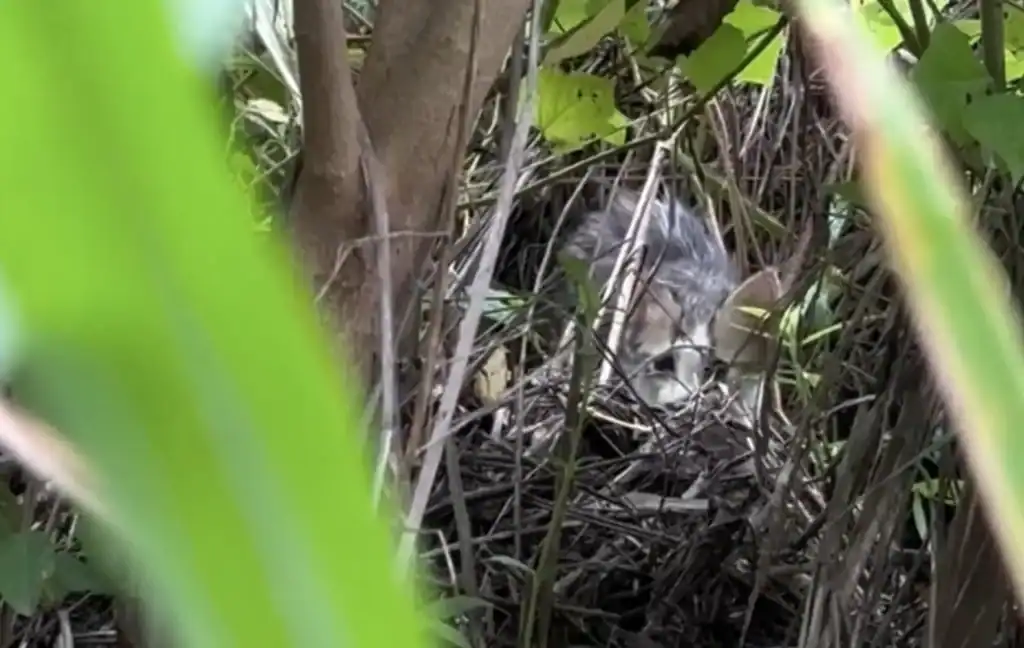 Then, in the distance, someone saw a blur of movement. The kitten darted over the slick vines, desperate but exhausted.