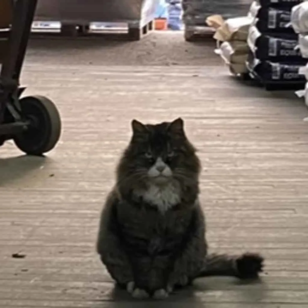 The workers froze, unsure if this wild-looking cat would hiss or pounce.