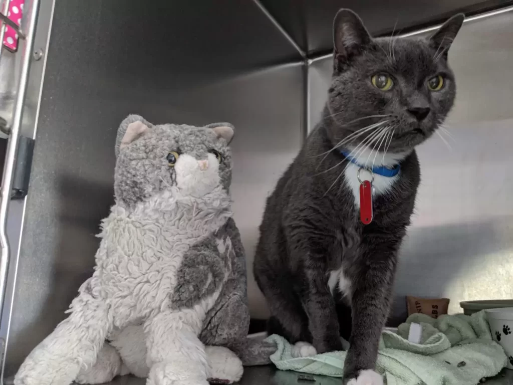 And of course, his stuffed cat will come along — they’re inseparable. “They’re a package deal,” the staff often laugh, “two for one.”
