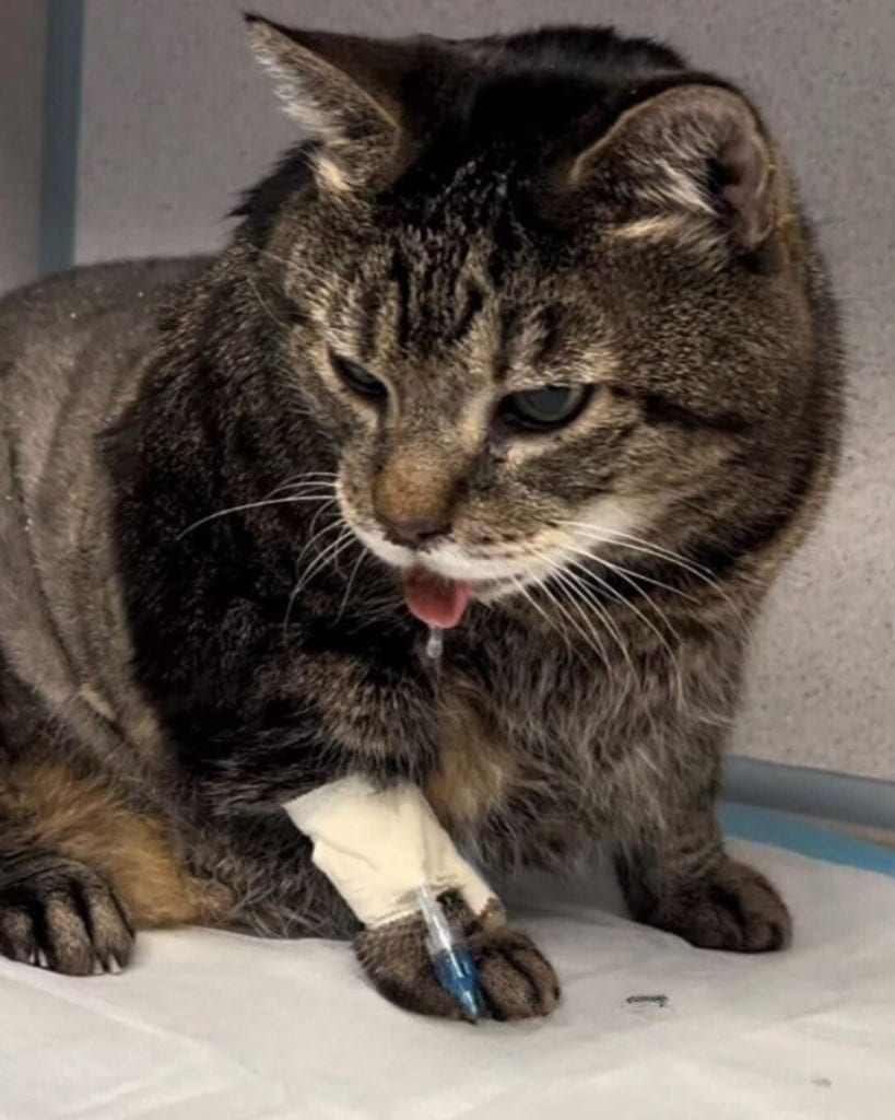 The shelter team worked carefully to help him feel better.