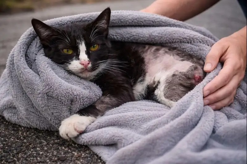 Kind voices finally reached him one cold December day, and gentle hands lifted him into warmth for the first time in weeks.