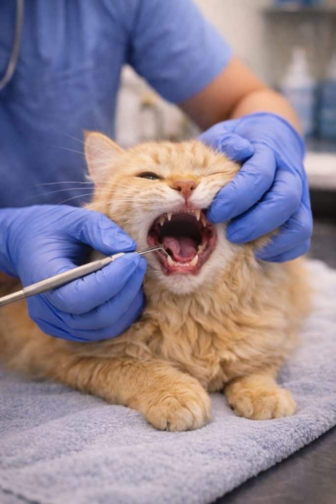 At the hospital, the veterinarian looked into her mouth.