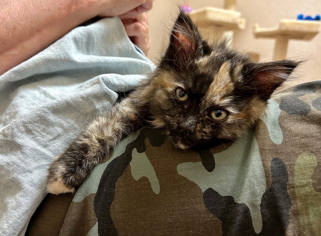 The little tortie was given the name Cindy, and she happily curled into the arms of anyone who held her. No one expected what would come next.