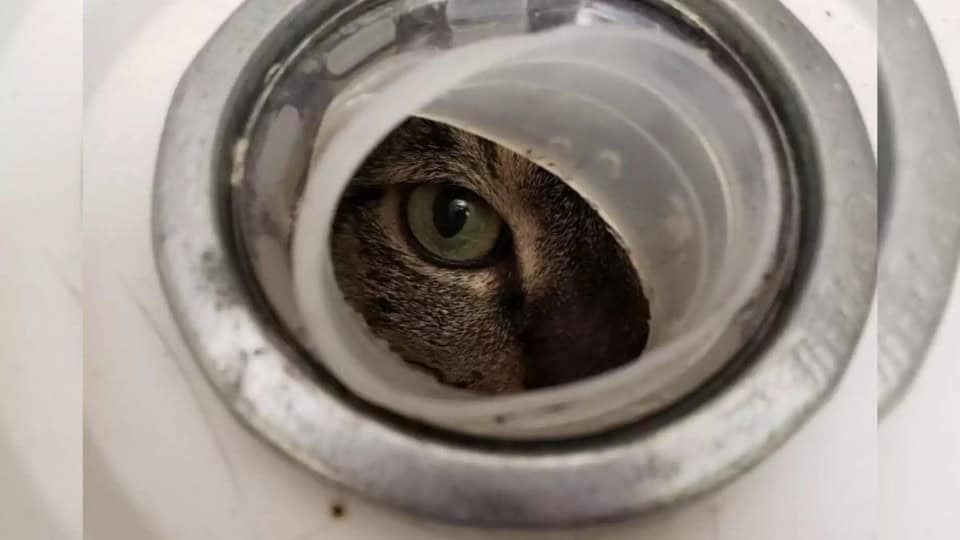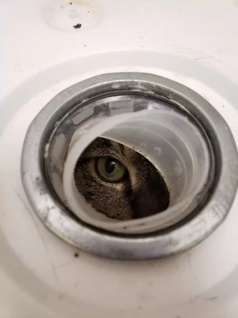 Yet the dog’s persistence made the attendant pause. She bent down to move the bucket out of the way — and froze. From the shadows inside, a single green eye blinked up at her.