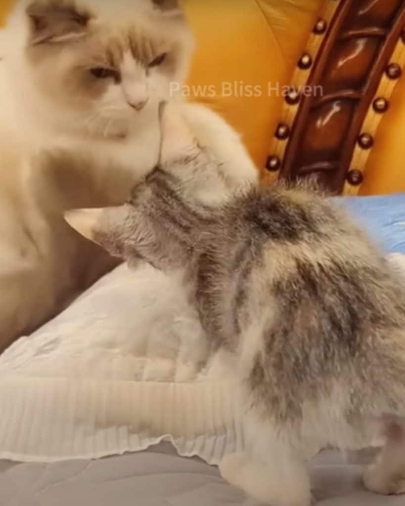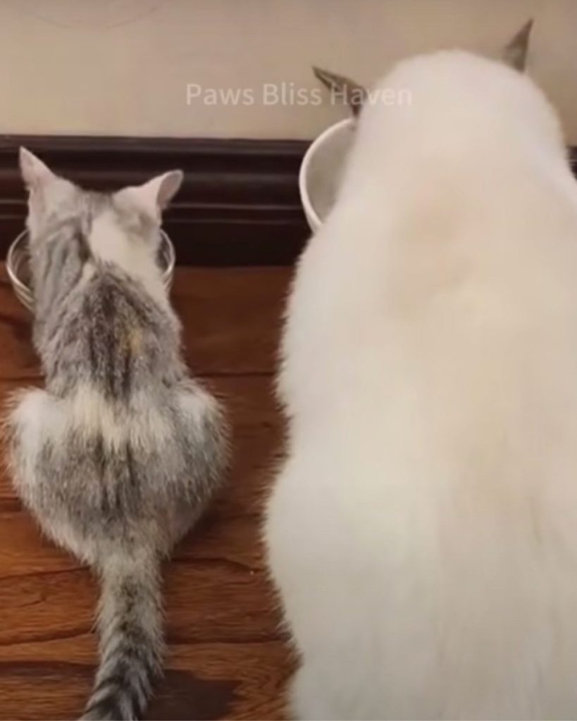When Candy lifted her paw, Chu Jiu lifted his too.