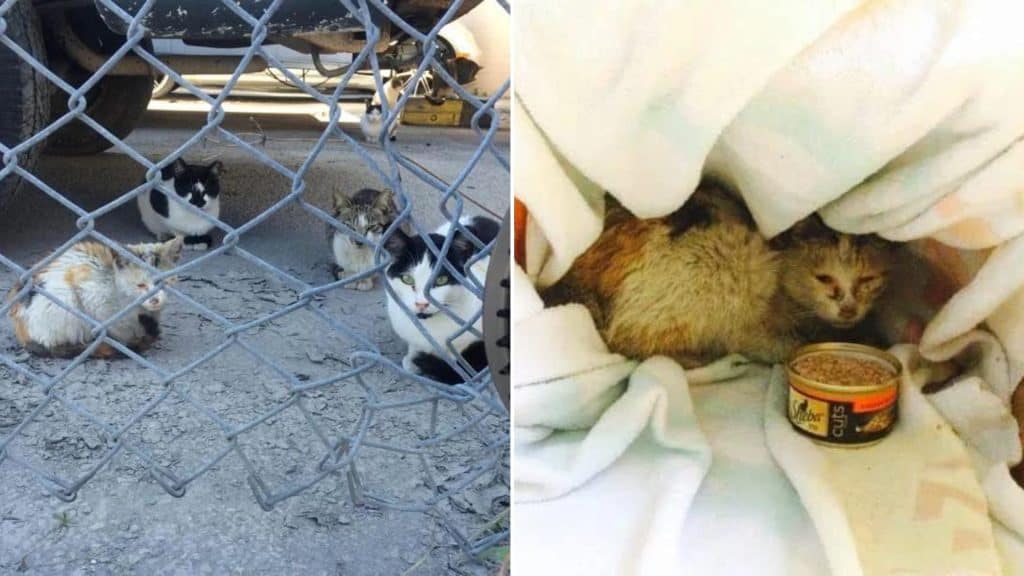 The group didn’t hesitate. They parked, stepped over the littered ground, and approached slowly. What they didn’t expect was to discover that this suffering calico wasn’t alone.