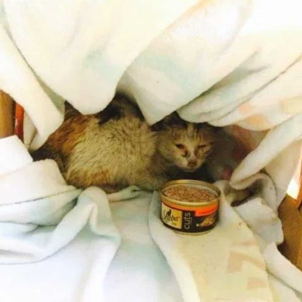 One of the rescuers later shared, “She was with a colony of cats, but the others wouldn’t let her eat. You could tell she had been struggling for a long time.”