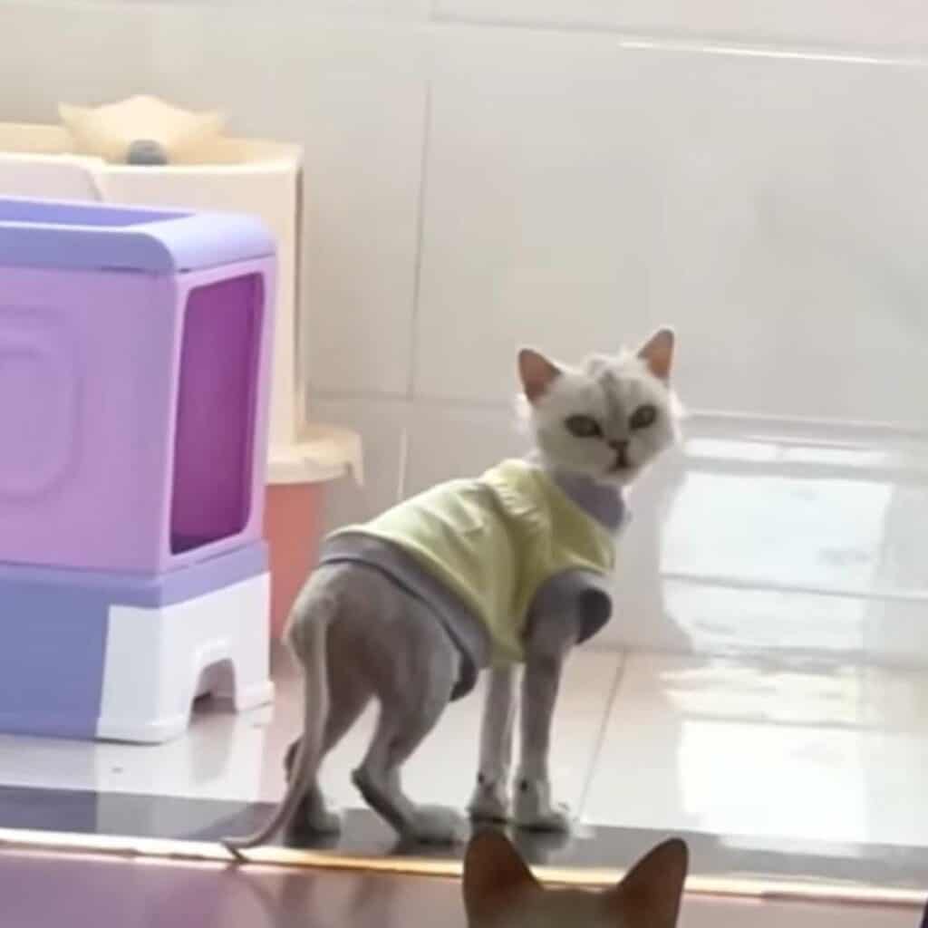 In her place stood a playful cat.