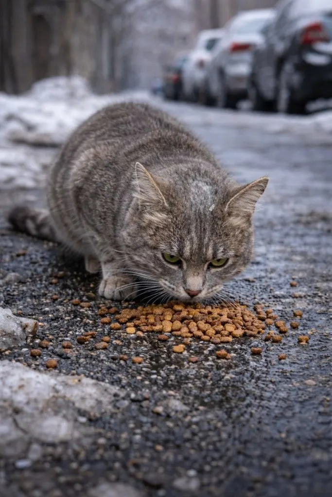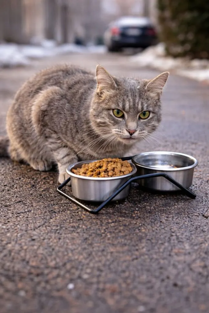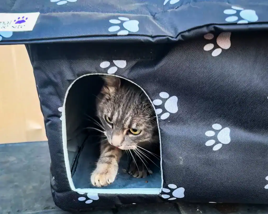 In the middle of that freezing season, a stray cat named Queen was still out there.