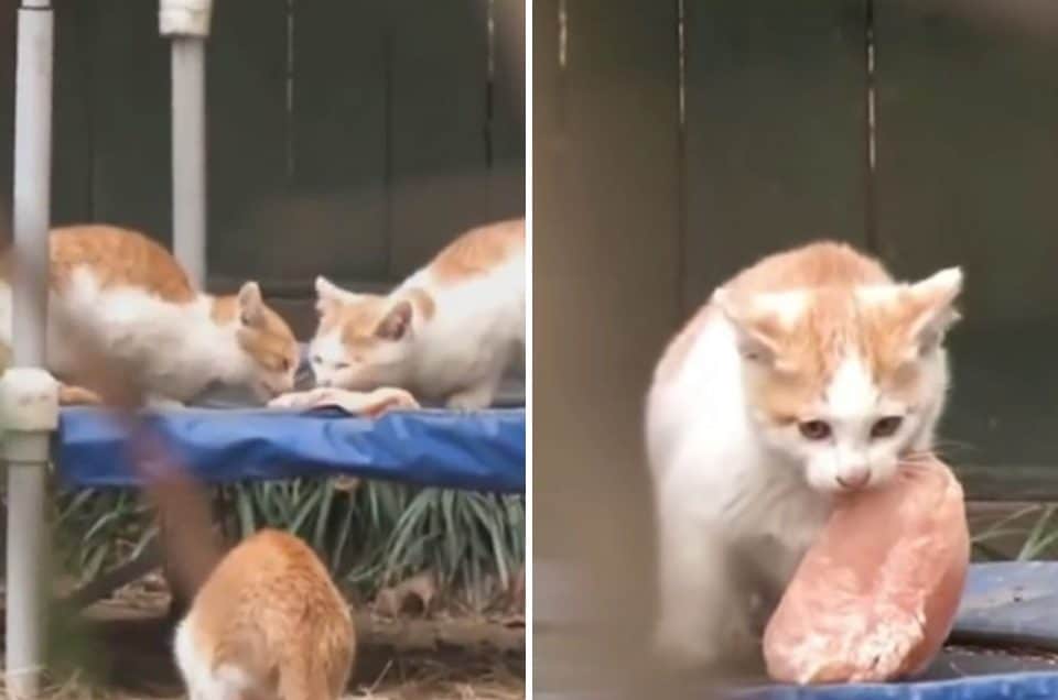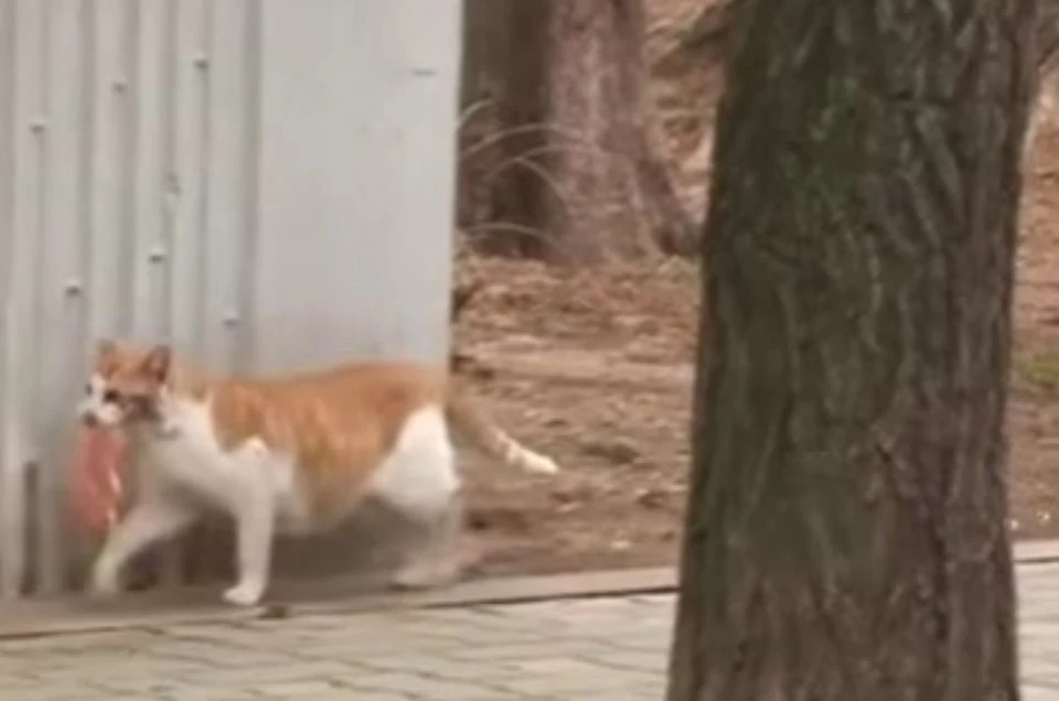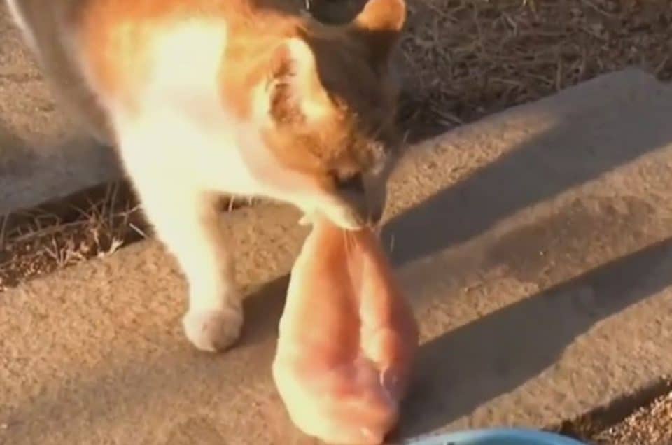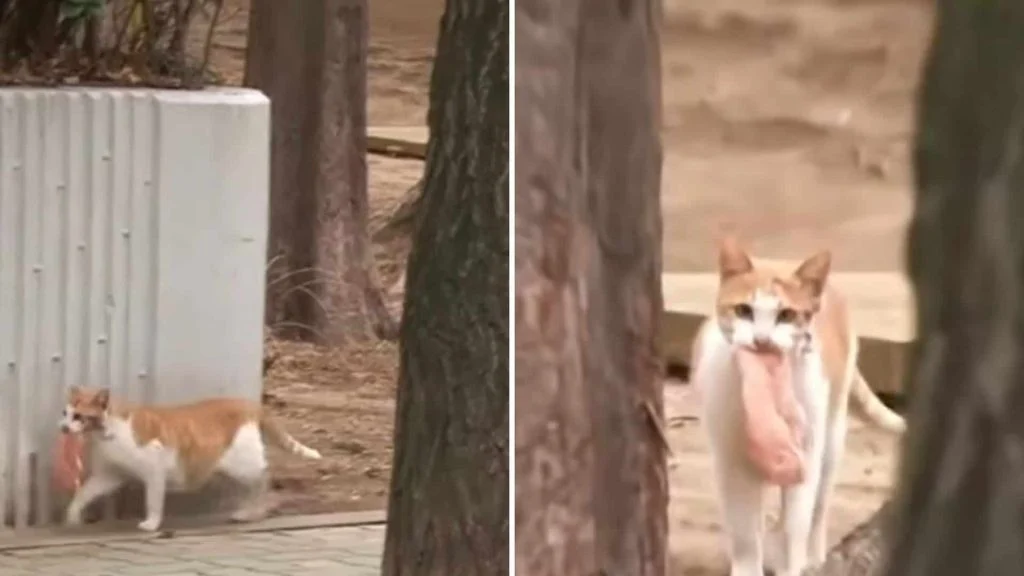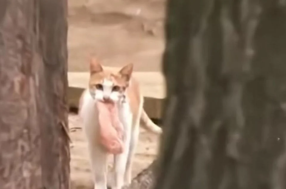 Every day, she appeared with a piece of chicken breast hanging from her mouth.