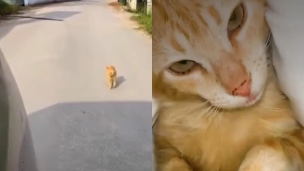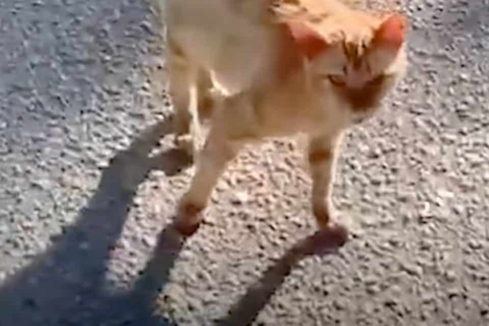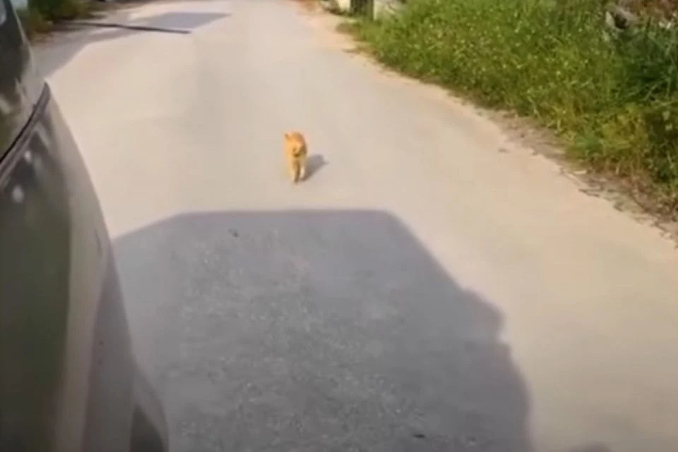 A thin ginger cat was running after her car.