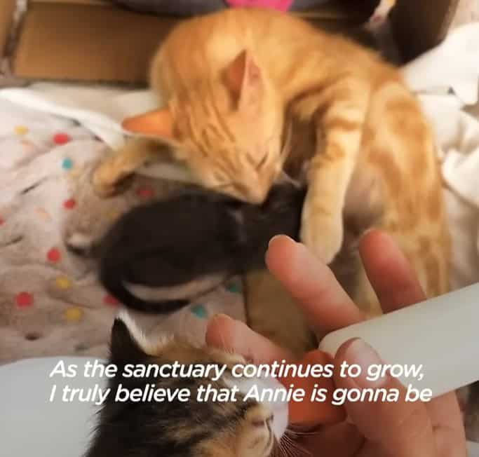 Annie washed the kittens carefully.